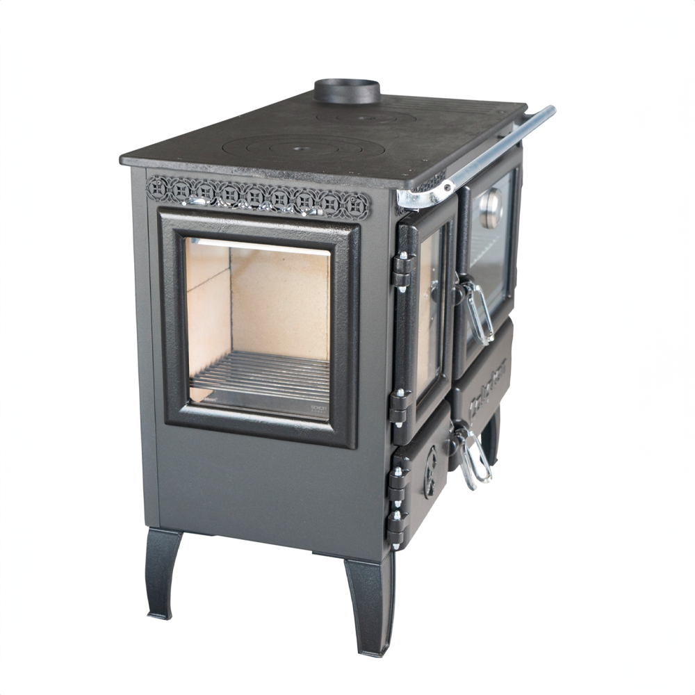 • Dayanıklı Yapı: Demir döküm üst tabla, çerçeve, kapaklar, ayaklar ve ateş mazgalı.